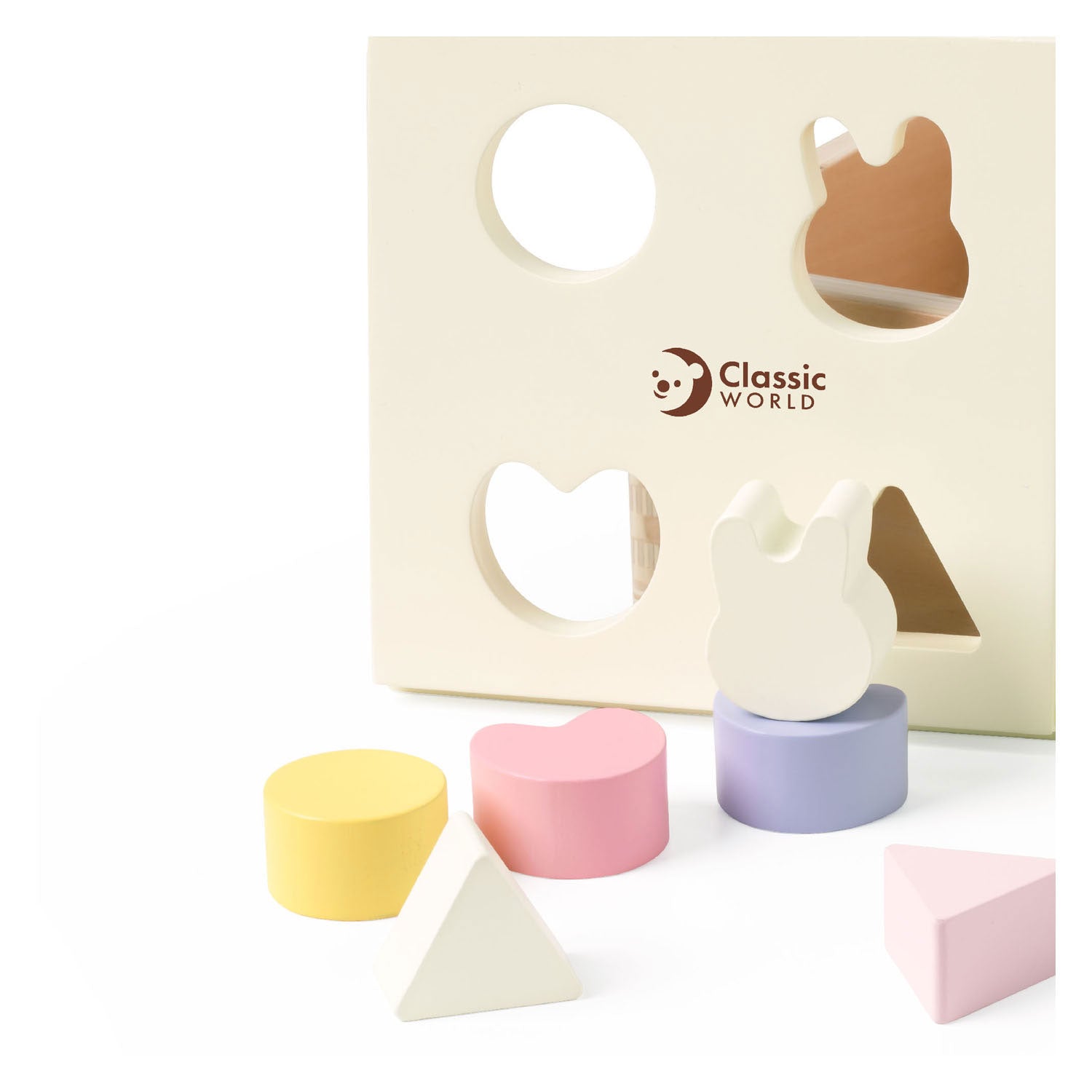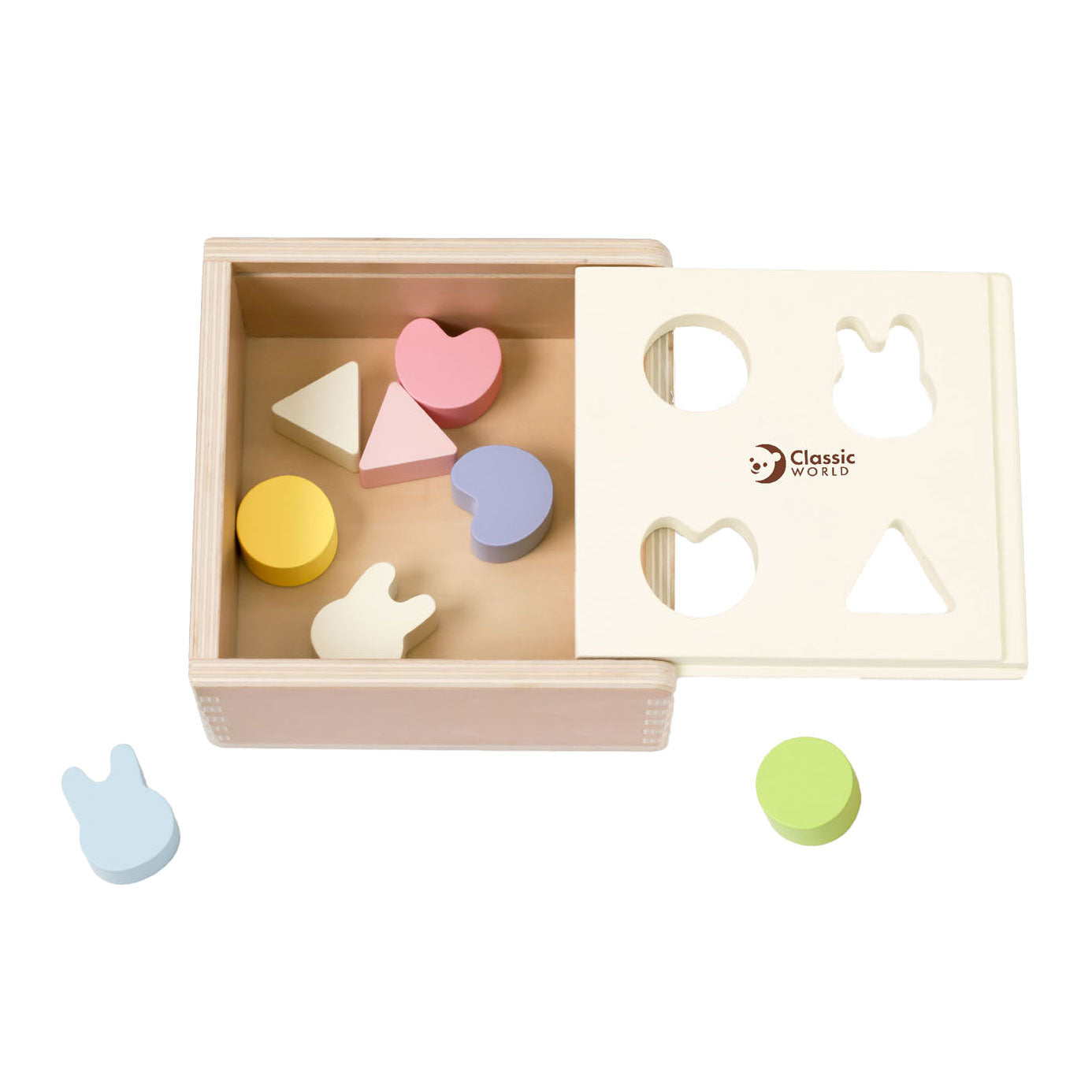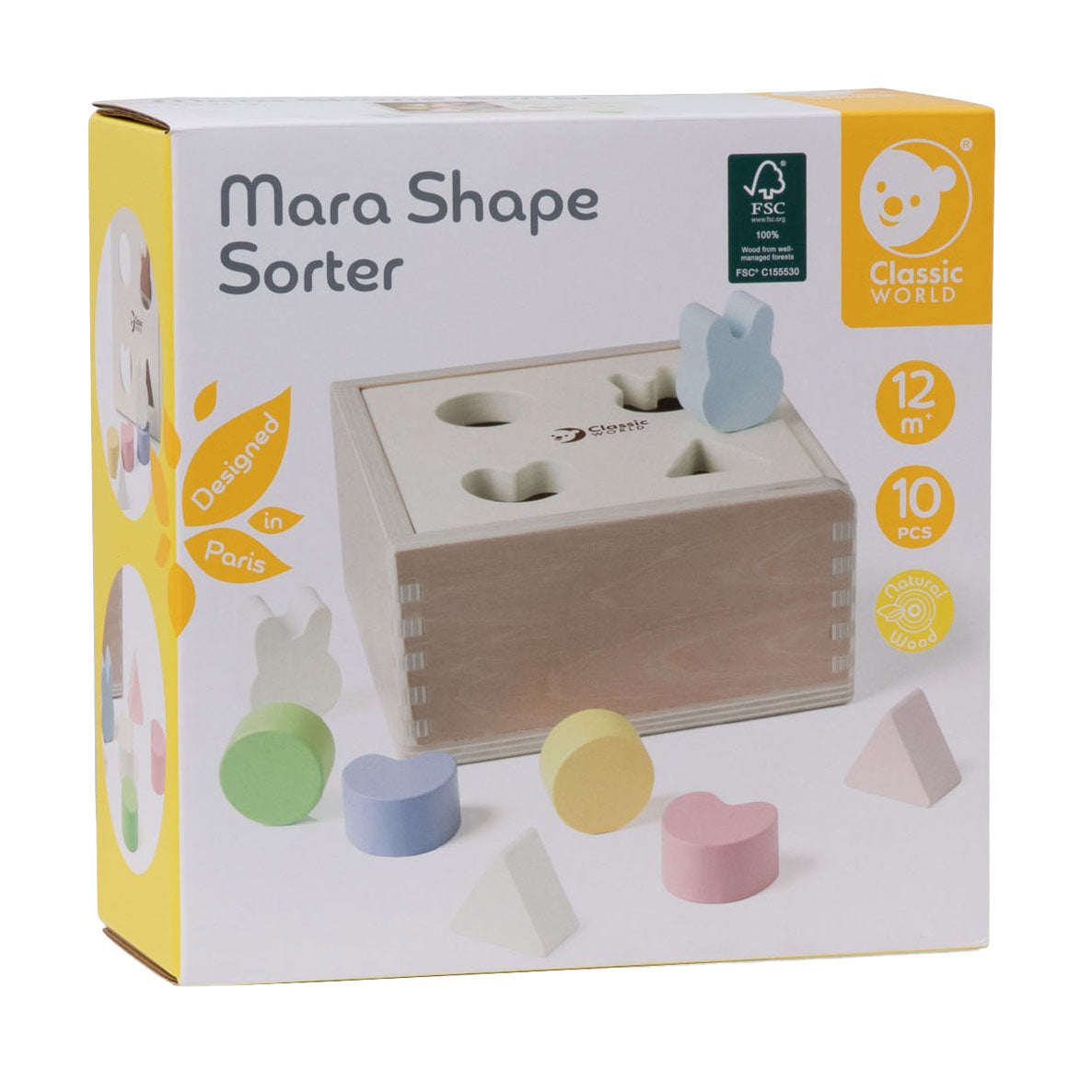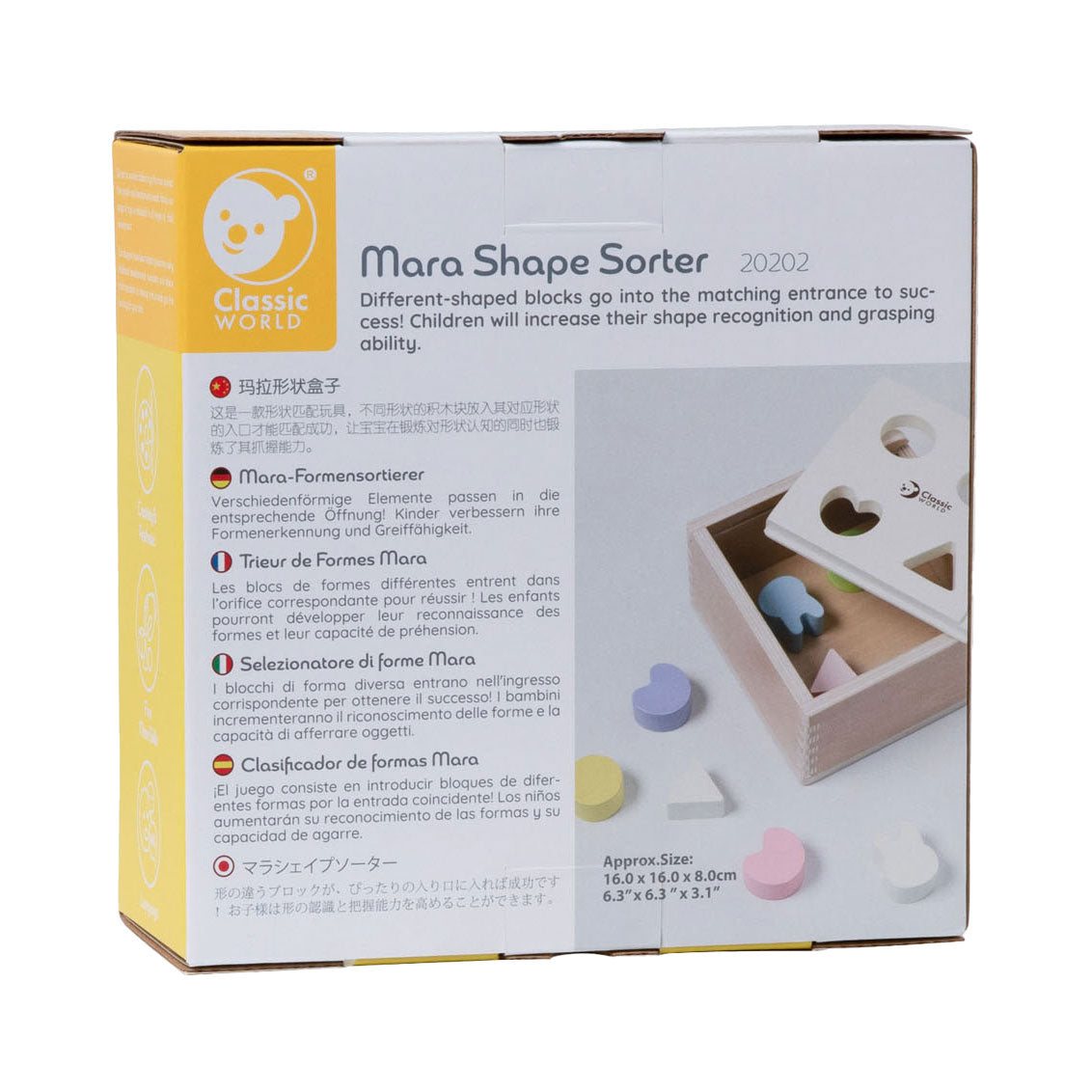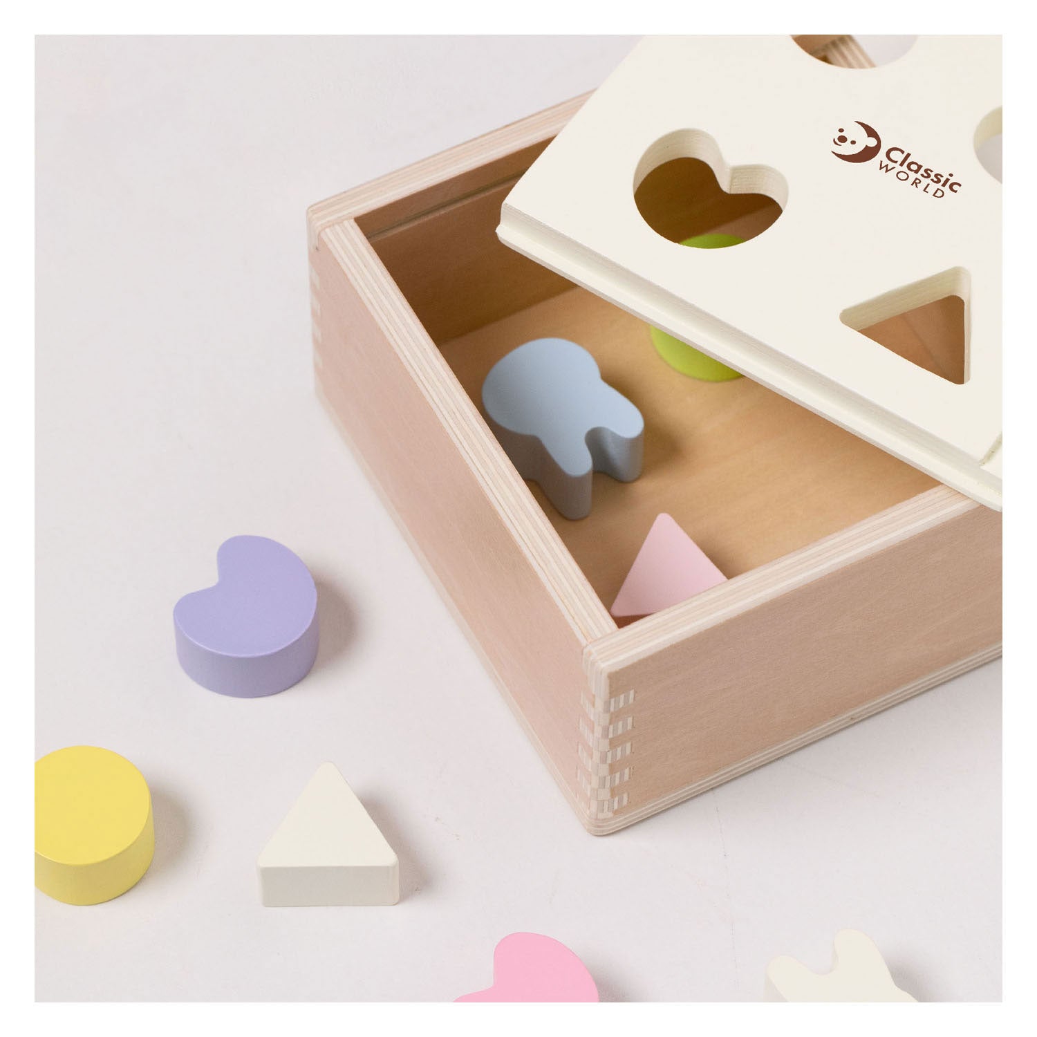 Ontdekken, voelen en herkennen. Deze houten vormendoos bevat vier verschillende openingen in het deksel, zodat kinderen de bijbehorende vormen kunnen sorteren en in de juiste opening kunnen laten vallen. Een fijne, eerste uitdaging die helpt bij het herkennen van vormen en het ontwikkelen van de grijpvaardigheid.